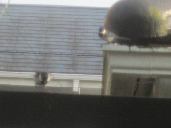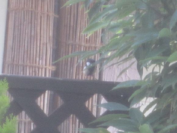 まだ風邪冷たい頃にメジロ達がオレンジを食べていた庭の巣箱にシジュウカラが子育て中です。