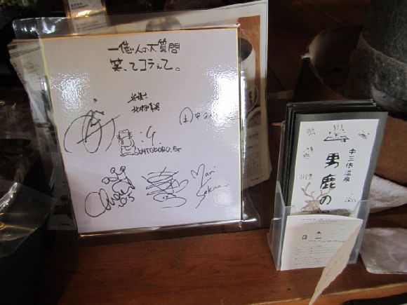 右の色紙は笑ってこらえての取材の時のサインです。真ん中は温泉「男鹿の湯」のパンフ