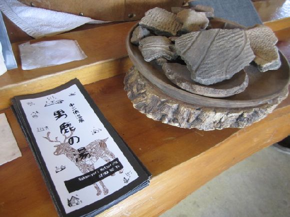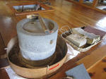 と遺跡の出土品、左が石臼体験。この中で食べる蕎麦はいちだん美味しい。(^^)