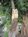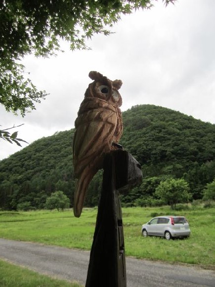 店の前にお客様を迎えるフクロウがお目見えし「十割り蕎麦た古代村」にお邪魔しました。