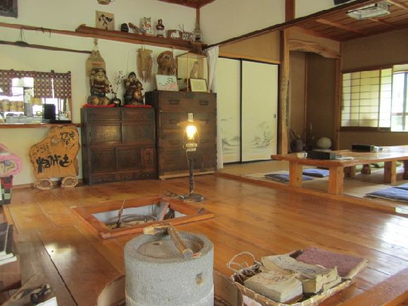 実家は建て替えたので今は無いですが土間の木枠の中に石臼がセットされていましたね。