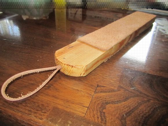 床屋さんがひげを剃る時に革で刃物を研ぎますが・・・あれですね。♪