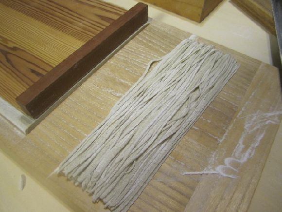 #40の二八で長さが出ると同時にほぼ切れずに上がりました。切り幅をもう少し細くすればよかったようです。注意を怠りました。いいリズムで切る方に神経が行ってしまい真四角にほど遠い。^^;