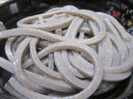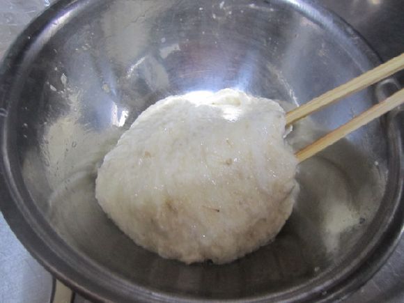 後は水切りをして器に移します。写真はかなり太目ですのでみなさんはもう一回り細くが良いと思います。