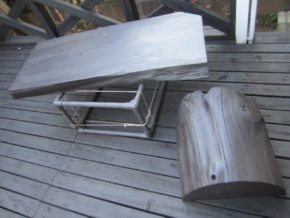 テーブル元々は足が有ったのですが傷んだので今のパイプを代用して縦にしたり横にしたりと、組み合わせると椅子と共にデッキにマッチしてます。