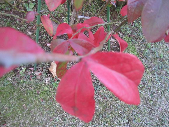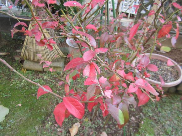 紅葉の庭、白樺の葉は姿も無くったのですがまだ木蓮の葉や真っ赤に色づくブルーベリーが色を残して頑張っています。