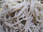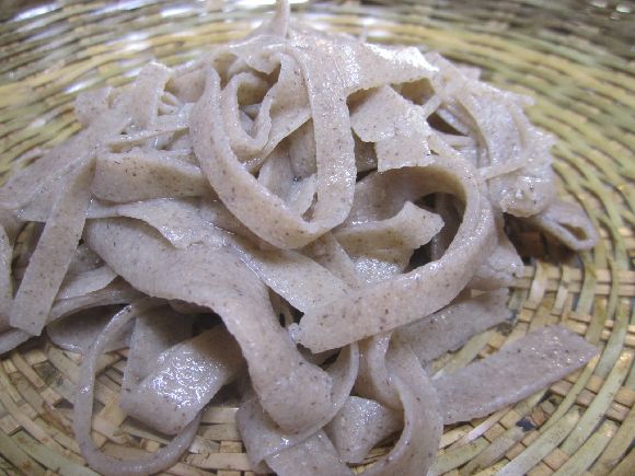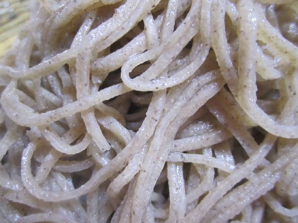 ソバ、少し黒挽き(こんな言葉あるか知りません)これが良いんですね、娘が昨年年取りに買ってきた店から今年もと手紙が来ていましたが、正直駄目ですね、ババの茹で方も問題がありますが、座ったまま酒を喰らっている立場で文句は言えませんしね、そば切り発祥の地としている当地では様々な蕎麦屋がありますが、山形村の唐沢のソバはいまだに美味しいと思っています、昔は小鳥の焼いたのをつまみに出してくれました、今は違反で駄目ですが、団体の職員だった仕事上あちこち頂きましたが、見た感じ当時のソバを彷彿させる出来ですね。