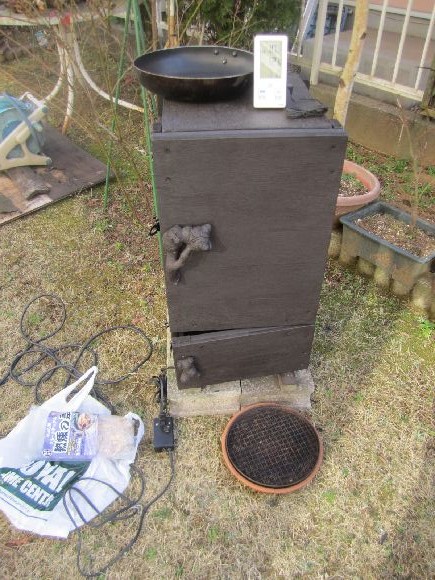 久しぶりの燻製で開始時刻は2時半ごろです。パワーコントローラを付けて電気コンロのチップにスイッチONです。