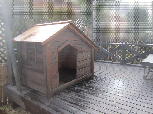 左脇に有るホースリールの下の板が傷んでしまったレオの別荘?の屋根です。