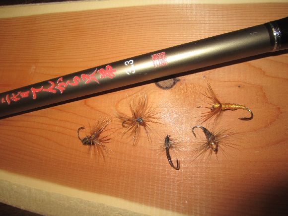 私もだいぶ前ですが、あえてグラスロッドの売れ残り品を探してテンカラ竿に短く改良したことがあります、短い竿ですので重さは全く関係なく非常に気に入ってグラスロッドより良く使いましたね、せがまれて上げてしまいましたが残しておけば良かったと思うくらいです、茶系の毛ばりがおおいようですね。