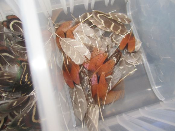 雌雉のハックルを小分けにしてるんですねぇ。