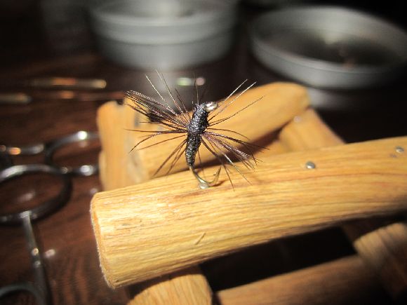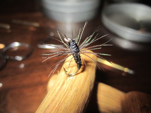 巻きこんでいますね、手間がかかりますがハックル量を少なくして均等に分散させるのは難しいものですが見事です、店に出すものはもう少しハックルの量が多いものが好まれますが、私的にはこの位がベストだと思っています。