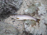 まるまるとお腹を膨らませた岩魚です。二投目に一気に流れの中に引きこんでいきました。