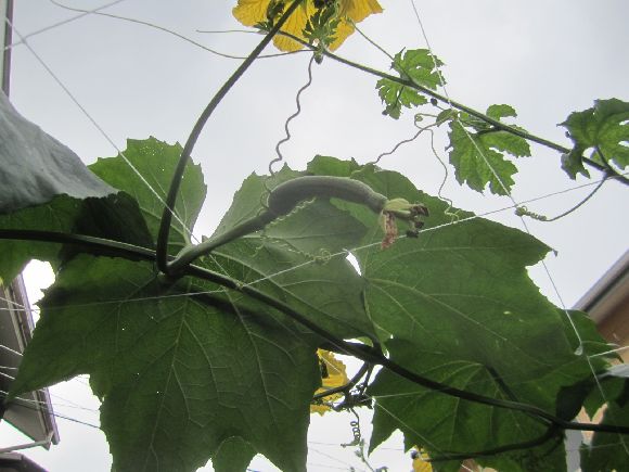 ごちゃごちゃに伸びるツルを辿りましたら現在それぞれに実が一つづつ生っています。