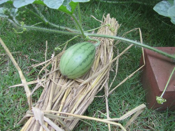 家庭菜園などと言うものでなく一畳菜園の放置栽培にミニトマト2種とスイカ三種とへちま、ゴーヤのグリーンカーテン&食用です。