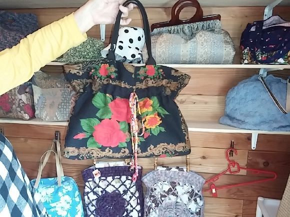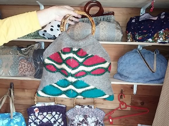 手作りの店「ちょこっと」とのことで個性的な一点物のカバンがありました。