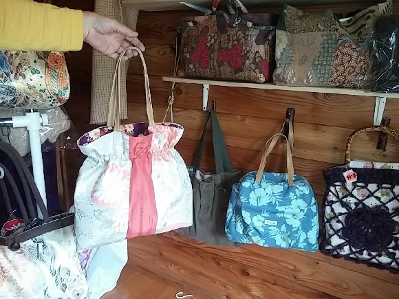 声をかけて尋ねてみると別荘奥さんが手作りしたカバンがありました。