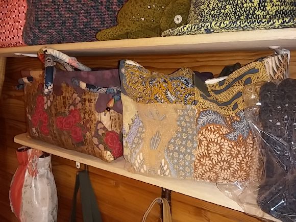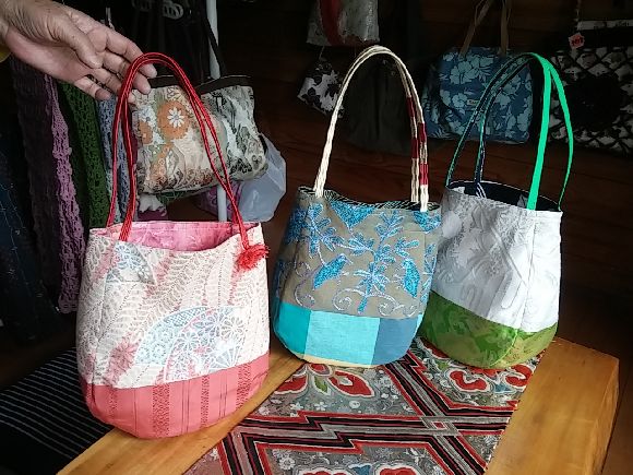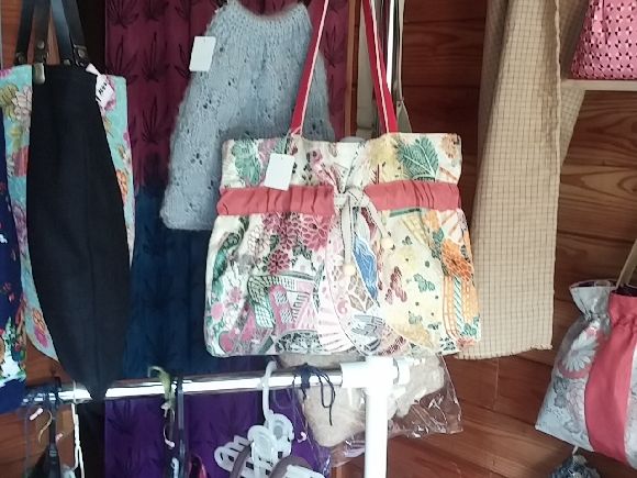 小さい品物から和服の生地で作られた大きめのものまでいろいろで中には非売品というものも、こだわりで作る品なので品質以上に割安ですね。