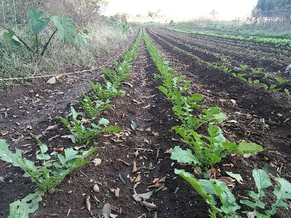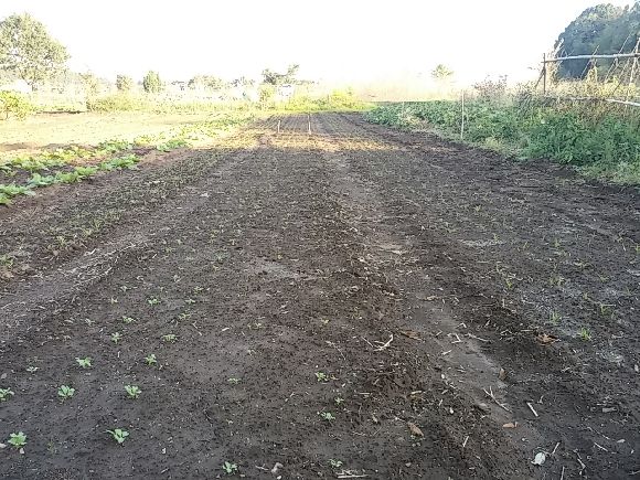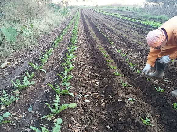なんでも盛り土の修正を急いでいました。たくさん作るので収穫の時期をずらせるために植えた時期が違うそうです。大根だけでも一列150本ほどあり8列、最終的に1000本超える量とのこと^^;