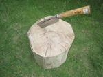 しかし薪割りと言うか刃物の受けがほとんど傷んでしまい最近はタッコの切り株の椅子程度・・・材木屋さんに尋ねたら白樫がちょうど有りチェンソーでカットしてもらいましたがあまりの硬さにじいちゃんはすっかり曲がってしまい悔しがる様子・・・その人の好さに良いです良いですと申し上げたらすまんとばかりに500円で頂くことになりいくらか足すも受け取りませんでした。^^;