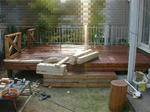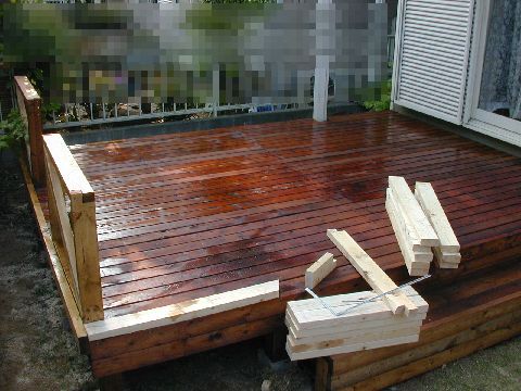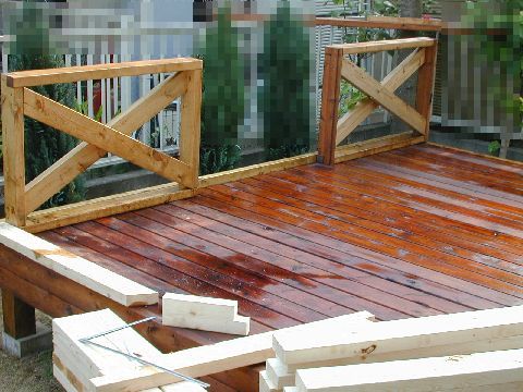 結局オリジナルサイズで高さ60cmだとバランスはとても良くフロアーに広さも感じましたので60X90cmで組みました。ゆがみにくいように角の合わせも切り込みをいれて組み上げました。一カ所は2階のベランダ柱の関係で原寸合わせで作りました。ちょいと腰掛けるのにも良い高さです。