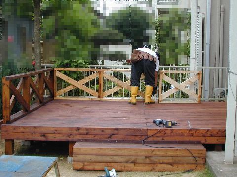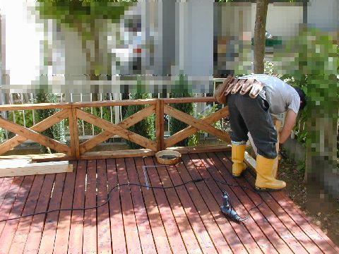 格安で良いものを作るために防腐剤を自分で塗っていますが材料をせんぶ裁断して事前に三度塗りしてから組むのが良いのですが仕上がりが遅くなるので平行しながら塗っています。