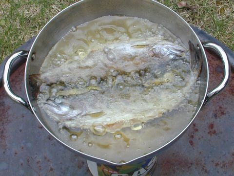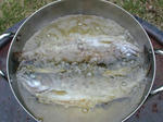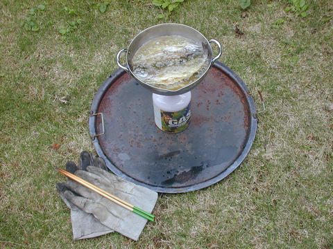 庭先で唐揚げです。じっくりとサクサクの唐揚げが出来ます。