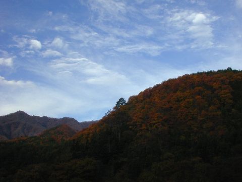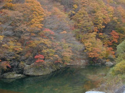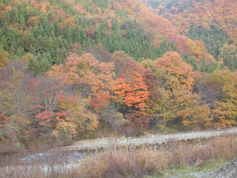 紅葉がとても綺麗で紅葉狩りの車が道の駅湯西川に・・・