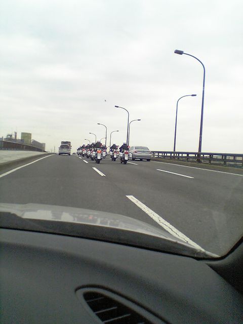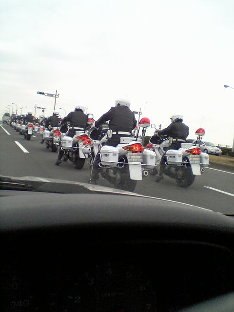 近くに白バイの研修をするコースがあり多分その帰りかと思われます。