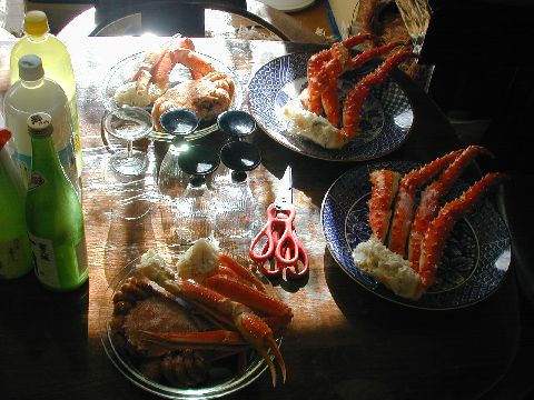 いただき物の美味しいお酒と来客用にと蟹三昧です。