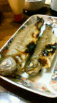 肴は男鹿川からの恵みを解凍!ガスレンジで焼いたのですが…やはり炭が合いますね。