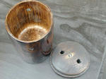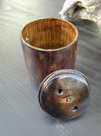 蓋の仕上げは600番のヤスリです。着色剤のすりこみも竹とは違いムラが少ないです。