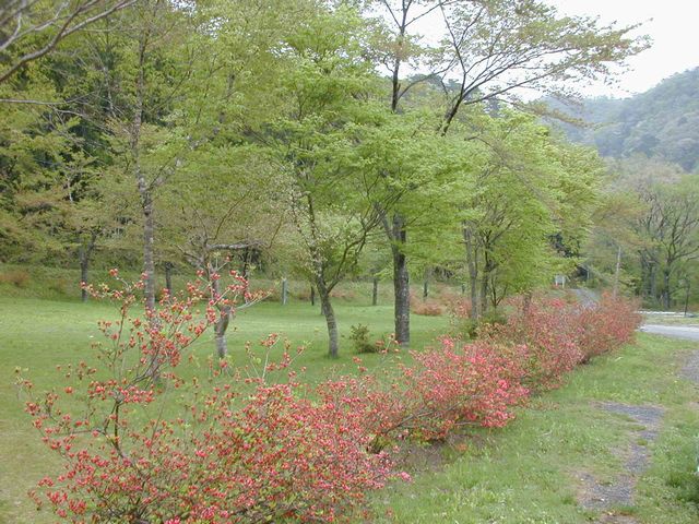 男鹿川の支流にある三依渓流釣り場、広々としたスペースに季節の花々が咲いていました。