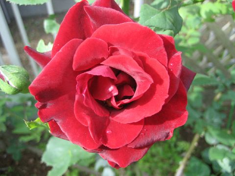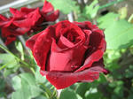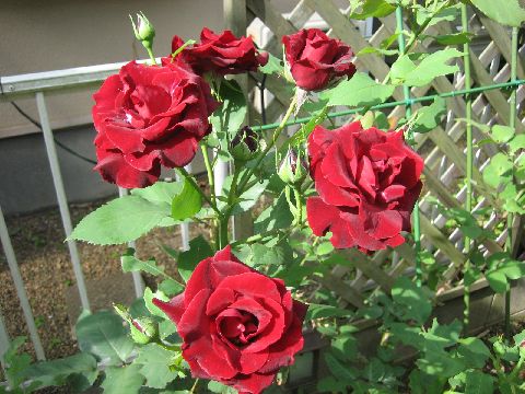房咲きつる薔薇の赤で今日の日差しにはぴったりです。