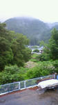 ロッジ古代村からしっとりとした三依の雨を眺めています。とても気持ちが良いです。