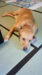 ペット同伴可能の宿でレオも安心してのんびりしています。