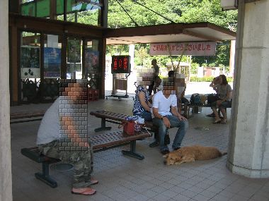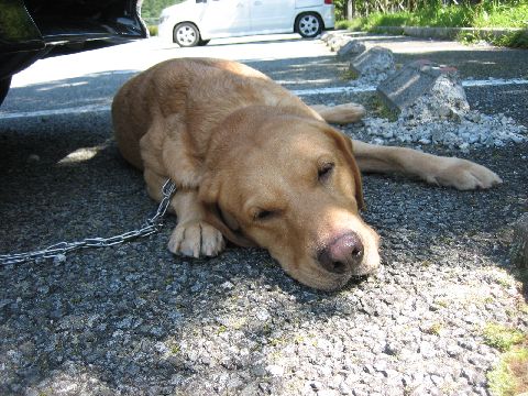 そのせいかかみさんと娘は道の駅で待ちくたびれていて・・・レオくんはあっちいよ~と車の下へ
