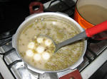 さらに1~2分程度沸騰させて白玉、ところてん、砂糖大さじ山盛り6杯(甘めです)加えて完了です。