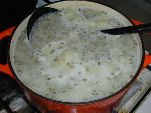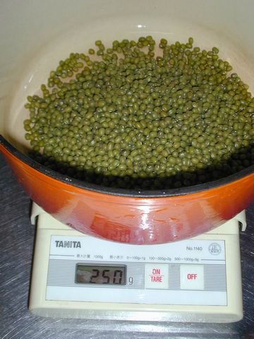 鍋に水700ml(適当)と緑豆250g程度を入れて沸騰するまで加熱します。