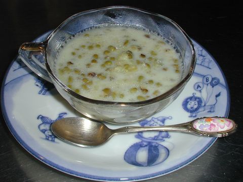温かくして緑豆汁粉、冷やして氷やバニラアイス、フルーツ缶を加えても美味しく食べられます。