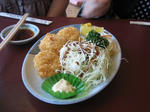 ホタテのフライ、ウニ寿司。このウニ寿司が680円ここならではの格安。