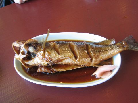 さらに煮魚、おさしみの(小)、回りを眺めているとどのテーブルも過食なオーダーをしています。