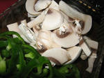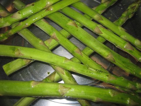 トマト、ピーマン、生のマシュルーム、グリーンアスパラ、ベーコン、イカ、大葉の葉、チーズ
