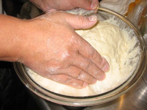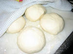 一次発酵はレンジで1時間、のちに取り出して小分けして丸める。