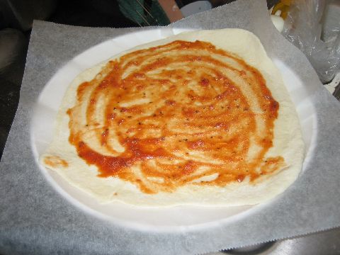 生地を丸く延ばすのが不慣れでやや歪ですがまぁ良いでしょう。