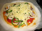 生地の回りが膨らんだ程度になったらトッピングをのせます。