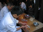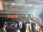 うなぎ屋さんは何軒もありますが何故かこの状況です。二件ほど軒先が解放されていて臭いに誘われてみんなが並びます。