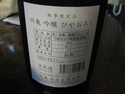 暮れに取りおいた川亀ひやおろし2を呑みます。
