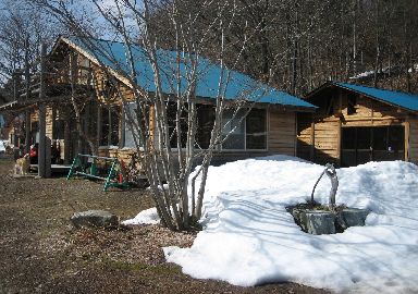 こころのもりはまだまだ雪の中です。オーナーはだいぶ減ったよって言っていましたがやはり寒い