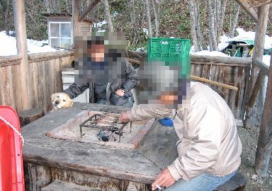 みんながようやくお目覚め早速朝食のあじを焼く。腹を満たしたら林道散歩